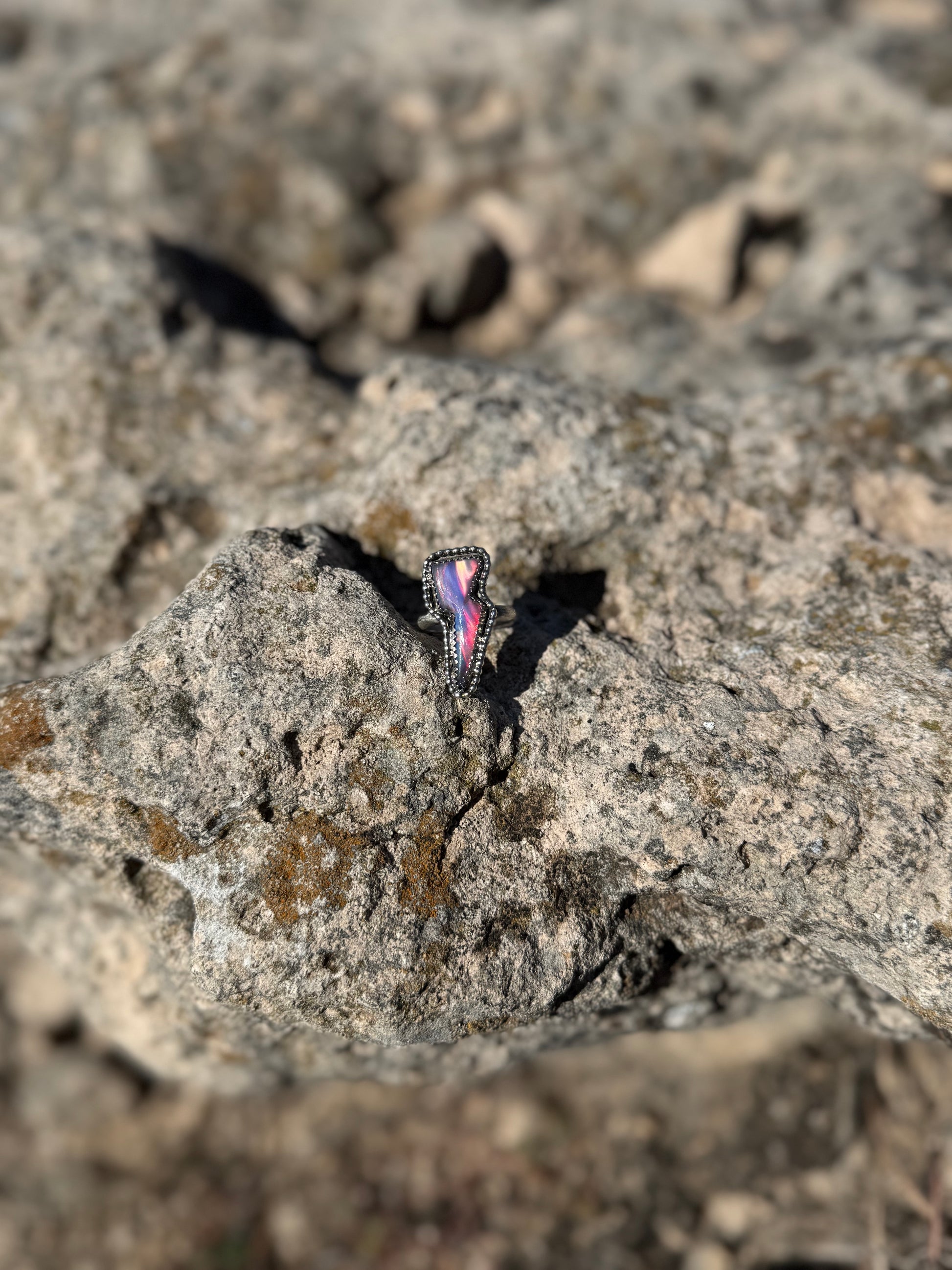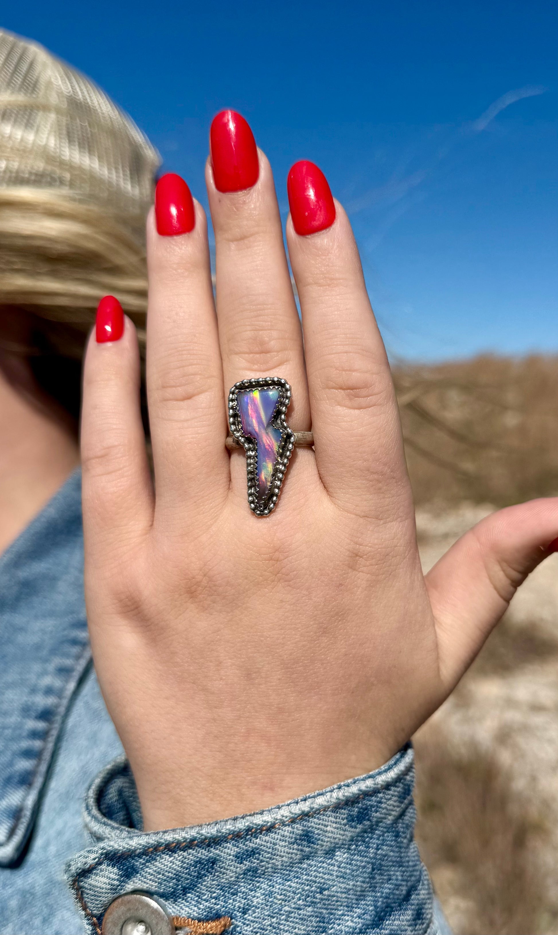 Aurora Opal Lightning Bolt Ring Size 7.5